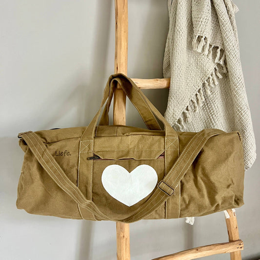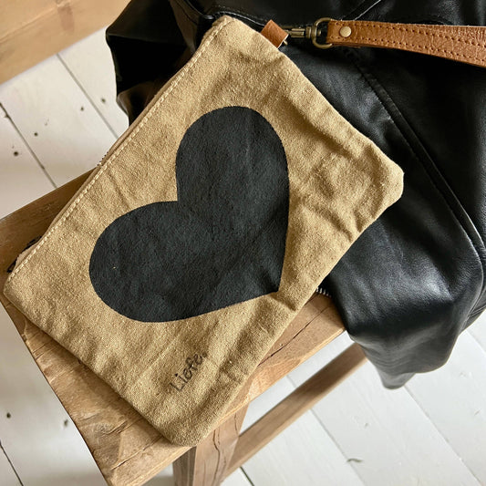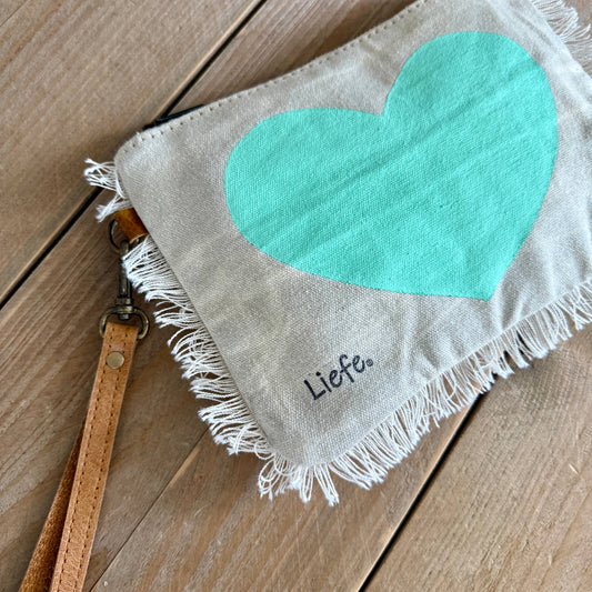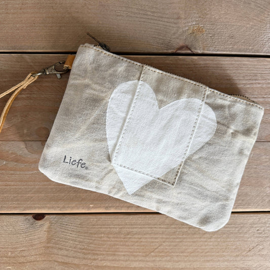 Heart Vintage Canvas Clutch (White Teddy Fabric)
