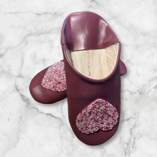 Handmade Moroccan Babouche Slippers are crafted with love for Bespoke Hearts. Our unique collection features handmade slippers from Morocco, each embellished with a distinctive heart symbol in beading or soft leather. Created by master artisans, these slippers merge traditional techniques with contemporary sophistication, providing comfort and fashion in one.