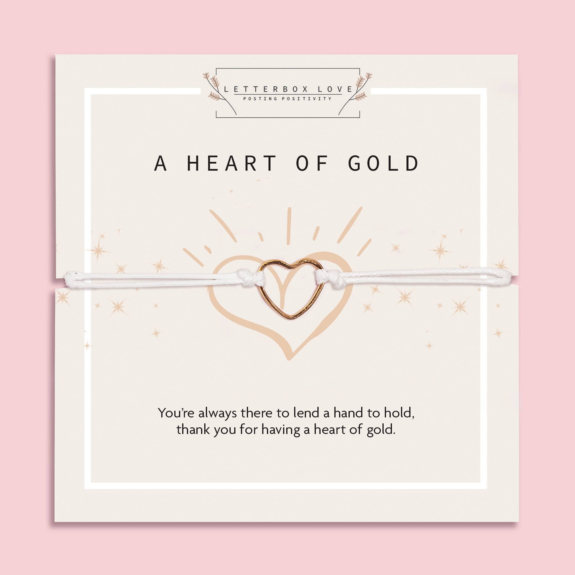 A little thank you, wrapped around your wrist Let someone special know how much they mean to you with this meaningful “Heart of Gold” bracelet.