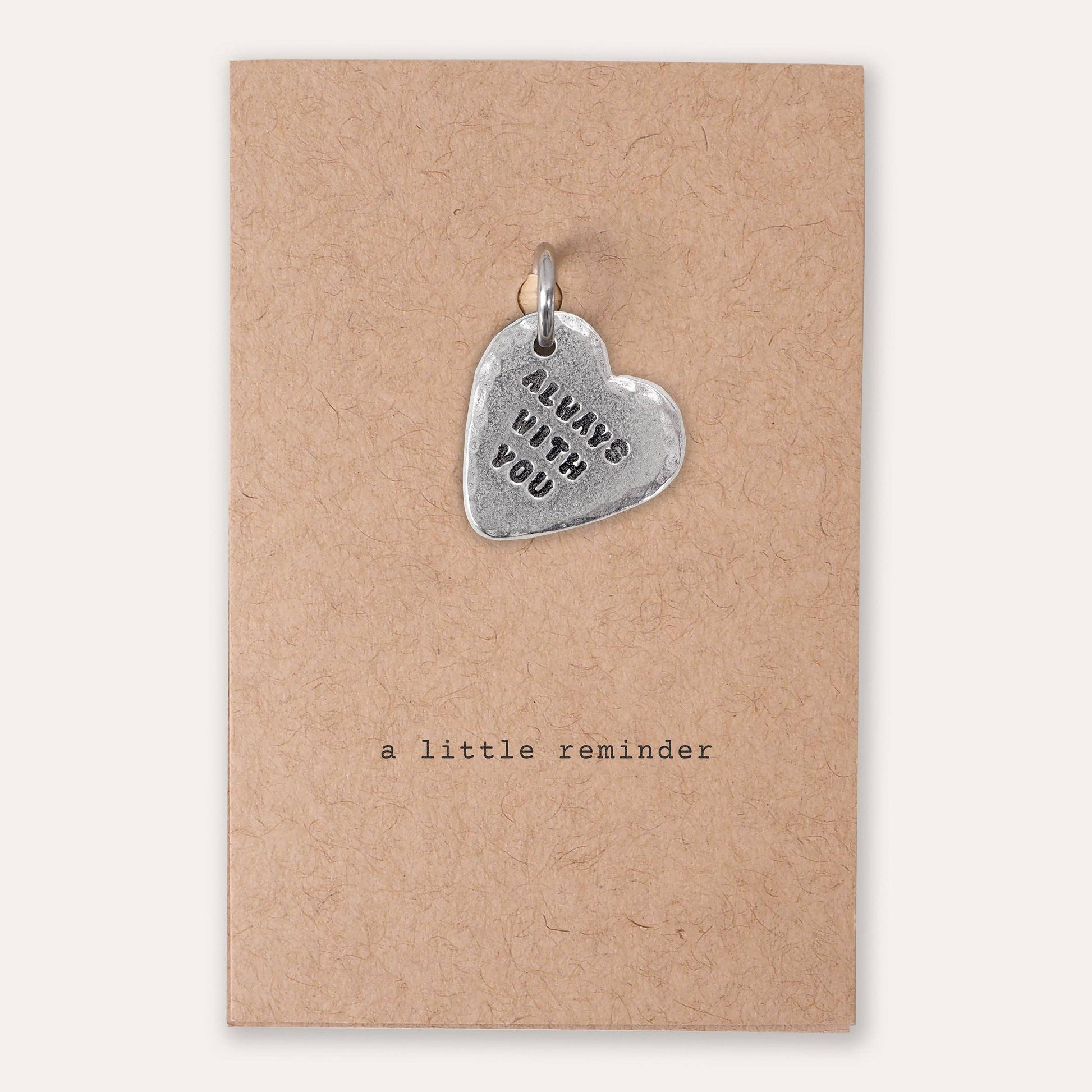 The folded card reads "a little reminder" below the charm and has space on the inside to write a short note before sliding into the patterned paper gift pouch, available separately, for gifting to someone dear.