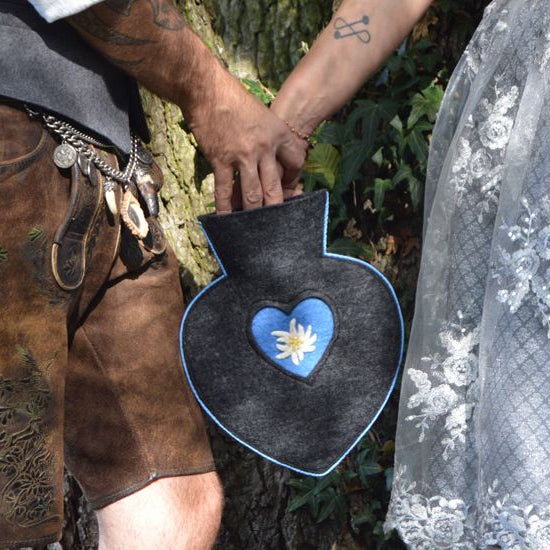 Edelweiss Heart Shaped Hot Water Bottle - Blue