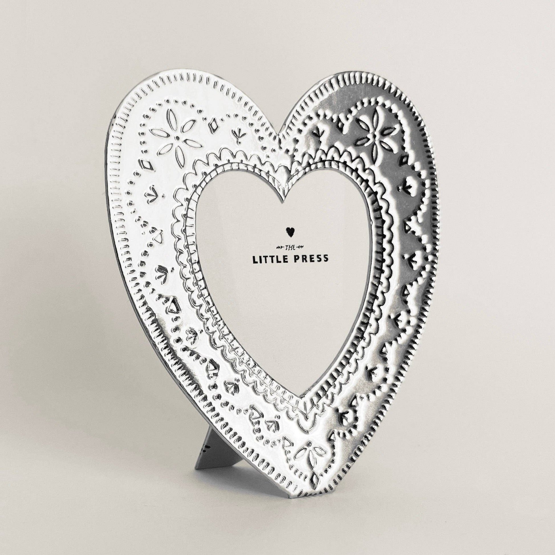 Letterpress Faux Tin Heart Travel/Desk Frame (Silver)