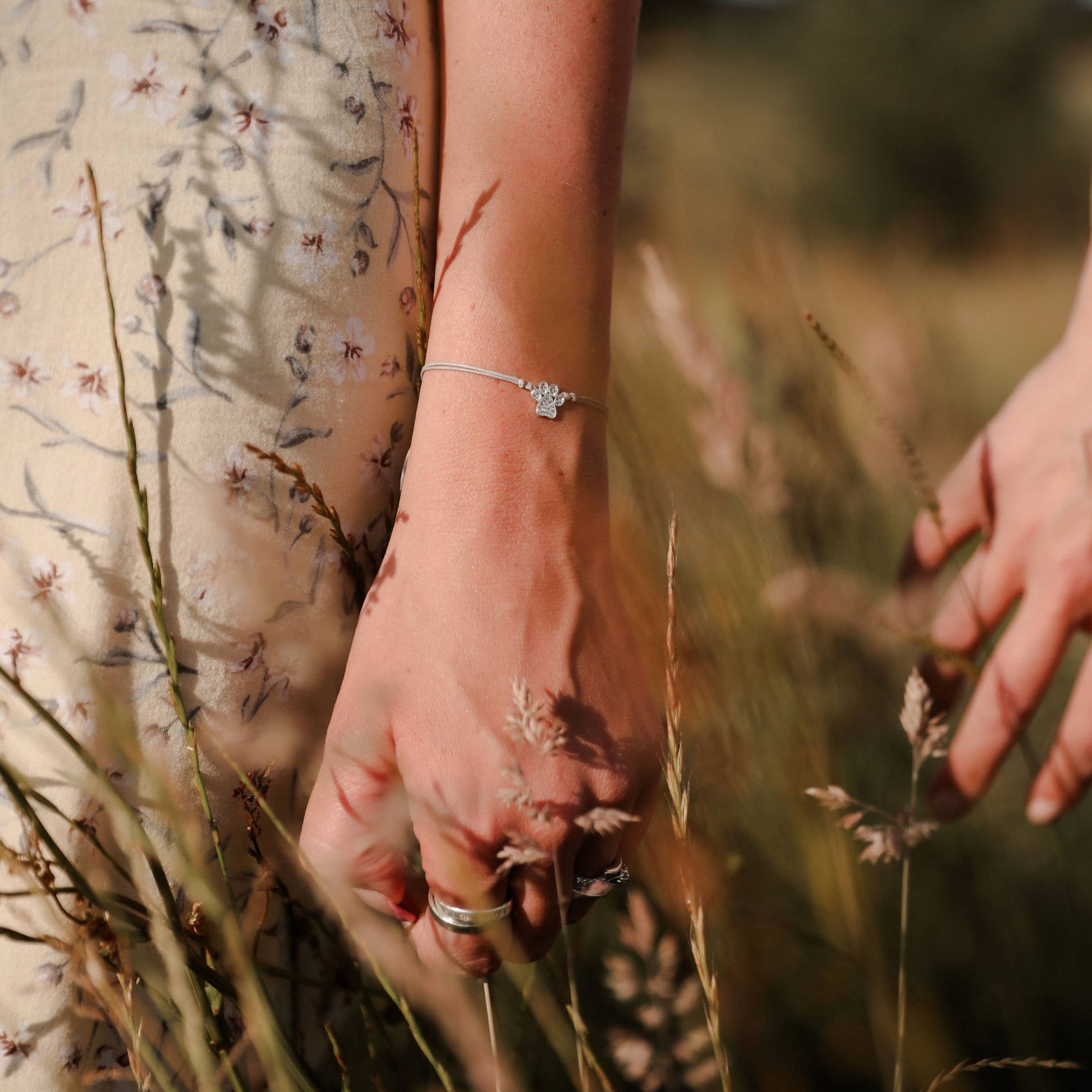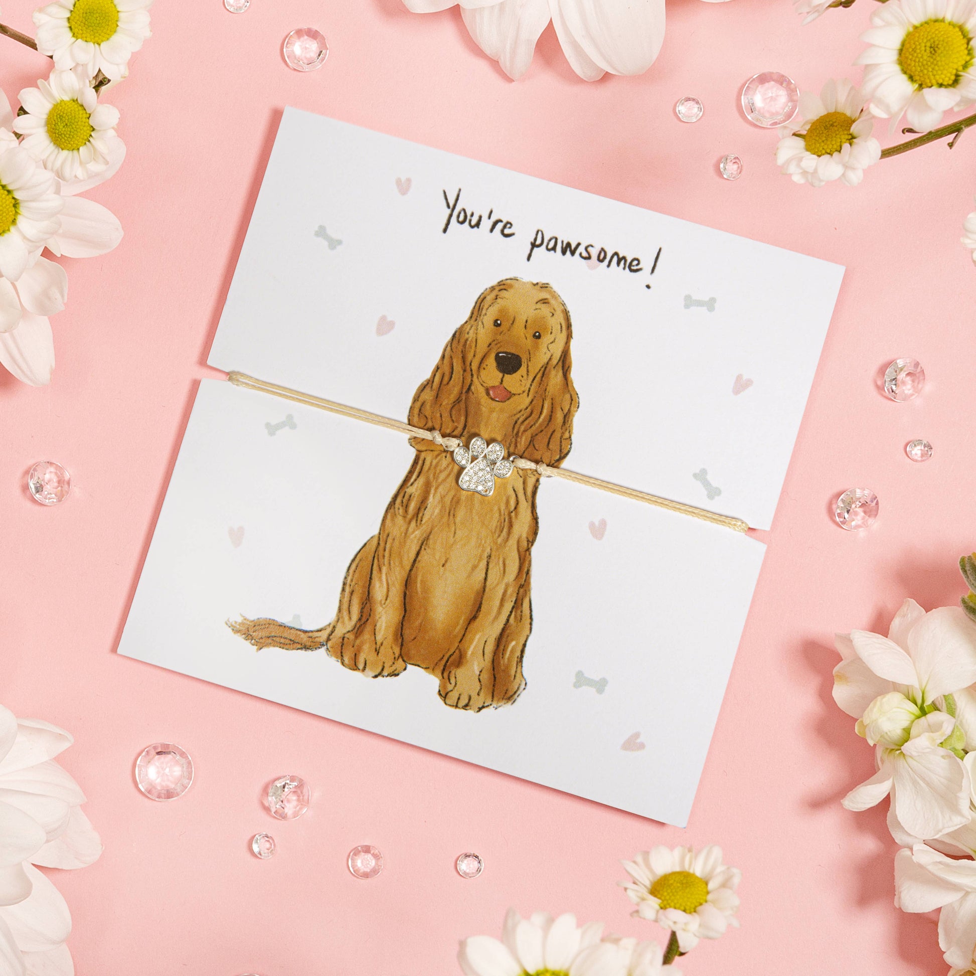Paired with it is a sparkly silver paw bracelet, a stylish yet subtle way to wear your puppy admiration on your sleeve. Comfortable to wear and a playful addition to any outfit, it's a badge of love for your furry friend. Plus, it's the perfect affordable gift for fellow puppy lovers!