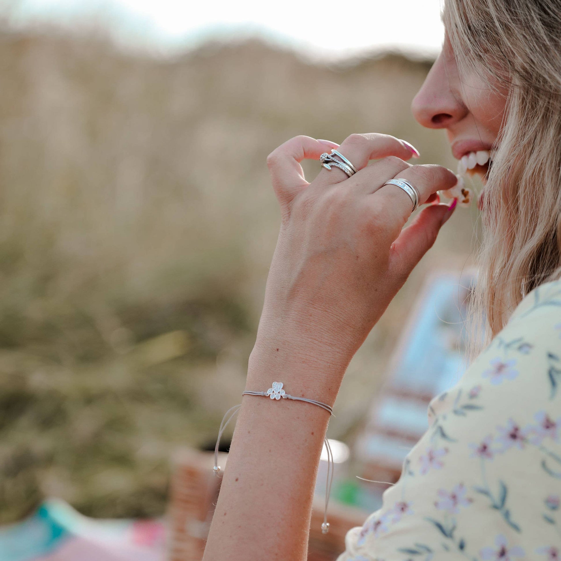 - Lastly, keeping your bracelets clasped when you’re not wearing them will keep them from knotting.