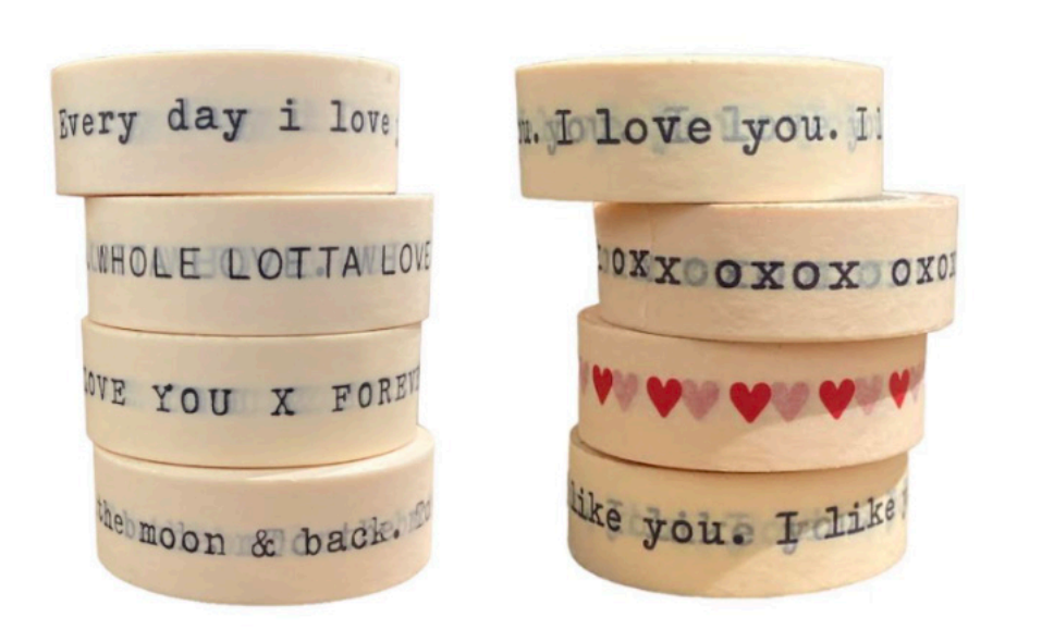 From sweet sentiments like "I love you" and "xoxo" to romantic phrases such as "to the moon and back" and "whole lotta love," plus charming red hearts and everyday affirmations, there's a perfect tape for every project. Whether you're wrapping gifts, decorating cards, or adding flair to scrapbooks, these playful designs make crafting more fun.