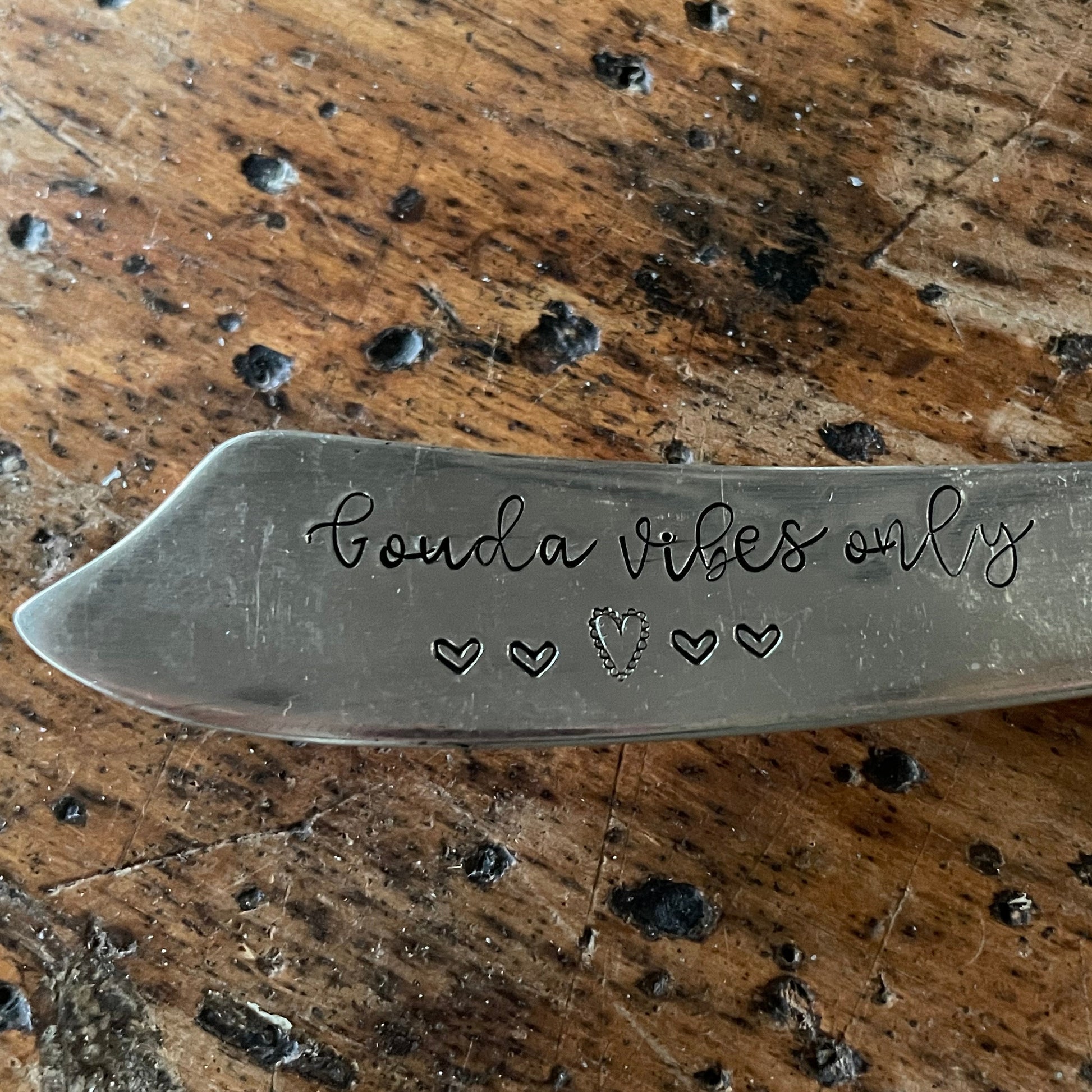 Welcome to the Sassy Barn Charcuterie Spreaders which are silver plated and hand stamped. Select from one of the following sayings: