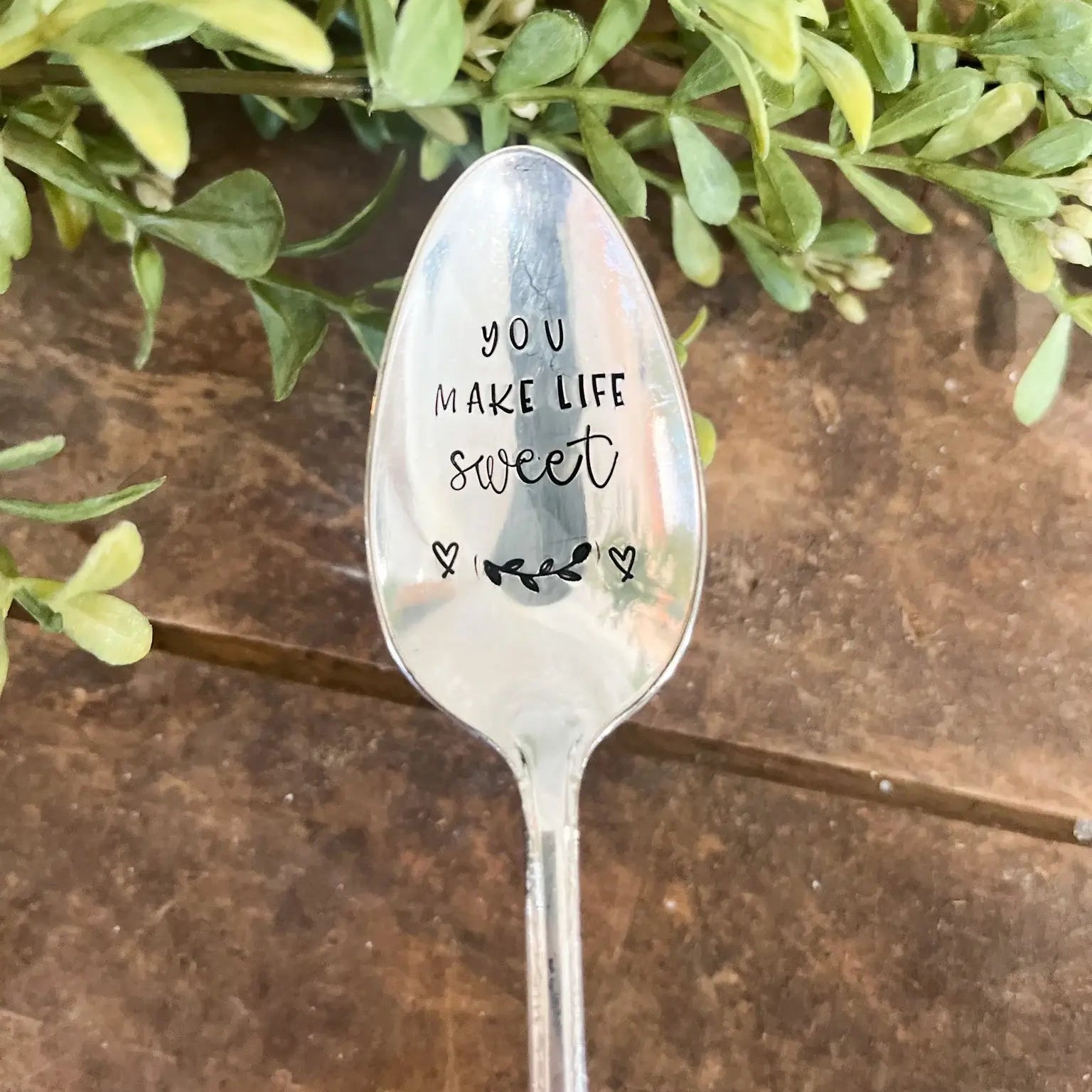 A daily dose of sweetness. This vintage spoon is hand-stamped with the message “You make life sweet”, making it a thoughtful gift for someone who brightens your world. Each piece is uniquely crafted by The Sassy Barn, giving it that perfectly imperfect, one-of-a-kind feel.